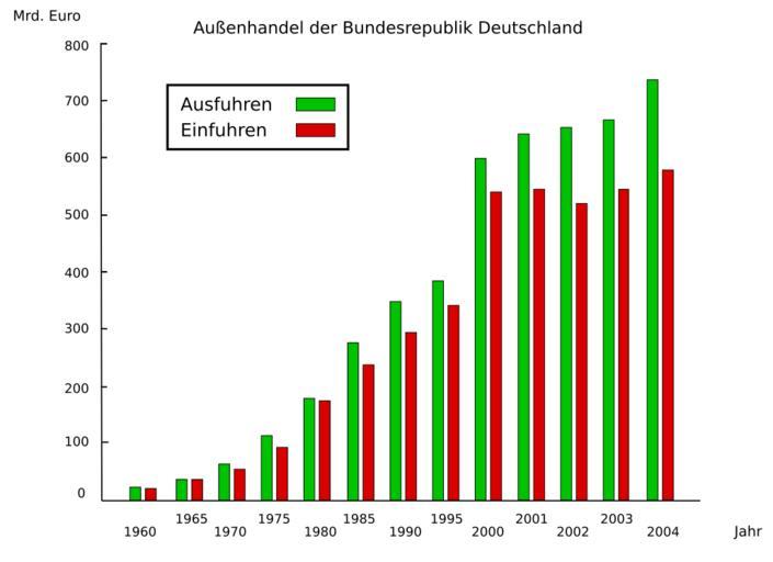 Keywords: Aussenhandel Deutschland v2.svg Aussenhandel der Bundesrepublik Deutschland own original text selbst erstellt 1 2008-10-18 Ladyt Beruht auf dem Diagramm Bild Aussenhandel deutschland png und wurde als verlustfreies SVG erstellt Ladyt Original upload log de wikipedia Aussenhandel+Deutschland+v2 svg wikitable - 2008-10-18 14 19 600×436× 25862 bytes Ladyt <nowiki> Information Aussenhandel der Bundesrepublik Deutschland selbst erstellt Ladyt 18 Okt 2008 Andere Versionen Beruht auf dem Diagramm - 2008-10-18 14 16 600×436× 25862 bytes de User Ladyt Ladyt <nowiki> Information Aussenhandel der Bundesrepublik Deutschland selbst erstellt ~~~ 18 Okt 2008 Andere Versionen Beruht auf dem Diagramm Bild Aussenhandel deutschland png und wurde als verl</nowiki> Balance of trade Economic history of Germany |