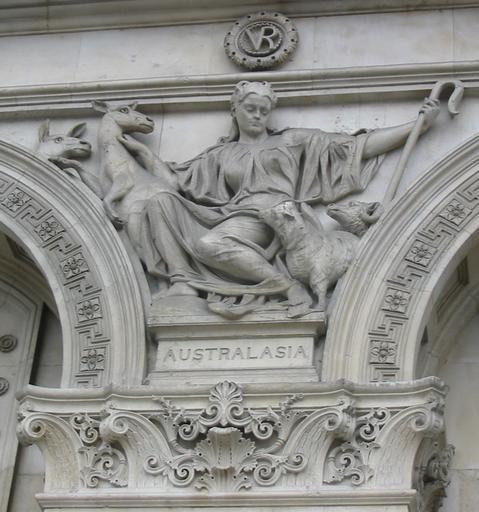 | Keywords: Australasia Whitehall.jpg London own own photo 20 d'Févri 2008 Man vyi Own work all rights released Public domain Architectural sculptures of the Foreign and Commonwealth Office Personifications of Asia Kangaroos in art Personifications of Australia John Birnie Philip |