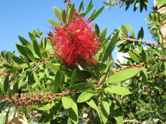 Keywords: australia bloom blossom bottle brush bud bush flora flower flowers green plant red shrub wild