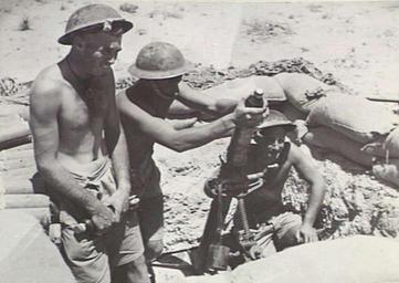 Keywords: Australian 2-43rd Inf Bn mortar in 1942 (AWM image 024718).jpg en A mortar team from the Australian 2/43rd Infantry Battalion during the fighting around El Alamein July 1942 024718 Not stated at source 1942-07-30 PD-Australia PD-US-1996 Military history of Australia during World War II |