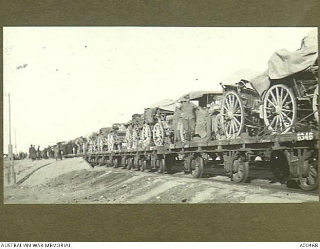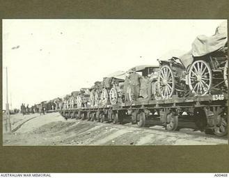 View Original: | Australian Army rail transport arriving at the railhead during World War I.JPG (640x499) | |||