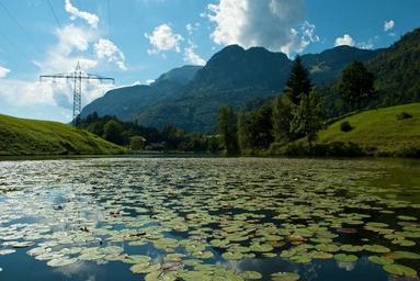 Keywords: austria mountains scenic valley forest trees woods summer spring lake water reflections nature outside lily pads