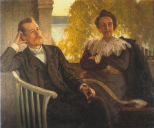 Keywords: Author Per Hallström and his wife Helga 1904.jpg Artwork title Author Per Hallström and his wife Helga Författaren Per Hallström 1866-1960 och hans hustru Helga 1870-1949 Creator Richard Bergh 1904 oil canvas cm 122 148 5 Private collection Bonniers porträttsamling Nedre Manilla Djurgården Stockholm source Public domain Other versions PD-old-auto 1919 paintings by Richard Bergh 1904 paintings Paintings from Sweden Bergh Portrait paintings of men Hallstrom Per Hallström Bonnierska Porträttsamlingen Portrait paintings with the balcony Lounge suits in art |