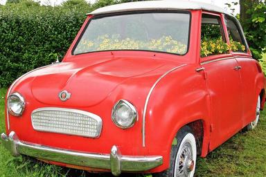 Keywords: auto flowers bumper planted car planted red goggo goggomobil flowers deco