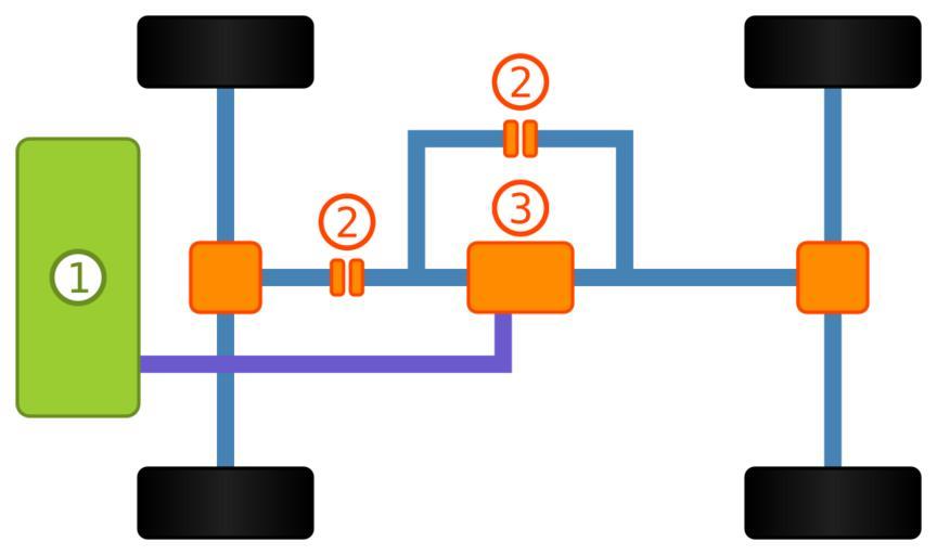 | Keywords: Automatic 4 wheel drive in car transmission.svg en A scheme showing the central differential in a car transmission Legend Engine Clutch Central differential de Allradantrieb 4MATIC Legend Motor Kupplung Zentraldifferenzial Inspired by Allrad 4Matic 124 jpg JPEG image by Wikisearcher SVG version by Tryphon 2008-12-12 <gallery> File Clutch in car transmission svg Clutch File Visco-clutch in car transmission svg Visco-clutch File Central differential in car transmission svg Central differential </gallery> inkscape validSVG Automotive technologies All wheel drive automobiles Diagrams of automobile engine layouts SVG automobiles |