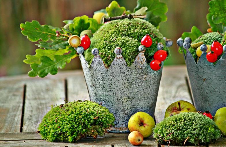 Keywords: autumn autumn decoration decoration fruits thanksgiving rose hip garden gartendeko moss oak leaves apple nature autumn fruits