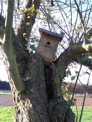 Keywords: autumn bird feeder tree orchard log nature einflugloch incubator nesting place aviary aesthetic