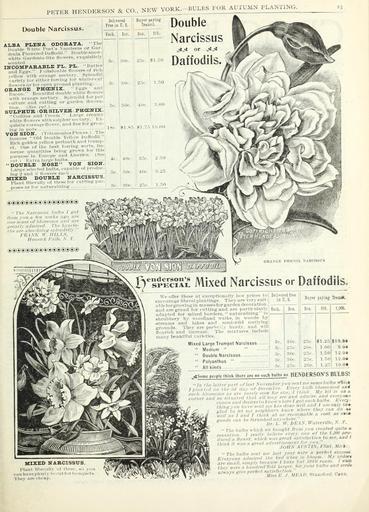 | Keywords: Autumn bulbs catalogue (16265684699).jpg PETER HENUKRSON CO <br> Double Narcissus <br> Delivered <br> yreeinD S \ <br> AI BA PLENA ODOBATA Hie <br> hoiiiili- Wliiti- I'o -i - Naiii-MiH or Onr- <br> ili-iila I'lou r il iMil' i lil DiJiiljICMnow- <br> ivlilti- Janli-iii i-liki' llowcrH cxcihIhIUO V <br> Hceiitcil – – – – – ¢ ;; l';' <br> INCOMPABABLE Ft PL ¢V' T <br> uiKl K 'U- – – 1- iill-lniiblc II wer f rlrli <br> v -llnw Hilh c-nh i - iicctJiry S ili-iiill l <br> 'viirh-lv c r ¢illi-r-ri r-i-hit' U r wliitcT-cul <br> ll u -i s ir inr -ii H'- 1 Iilniitiiijc <br> OBAKGE PHCENIX ' ¢ i kK« ' <br> liu on – r -n 111 idil Idublc while rto«iM-K <br> with ir in rc nrctiiry SpU-mlltl for pot <br> ciiHuiv Jiiiil iiittliiK or C ' li't' l'»- <br> tliiii I S'cc l-llt – – ¢ ¢ <br> SULPHUR I OB SILVER i PHCENIX <br> ¢ ¢ ' lIliiH Miicl Cn- -Mu ¢ ¢ l 'iii;'- rriMiiiy <br> ivhitr llowiTM \vilhsiili lniriM- l iry Kx- <br> iiiMtc v Kii - l w T and line for grow- <br> in;; in polK ; ¢ ¢ ¢ – – - f <br> VON SION 'r«'iiinii iilusl'li-inis I lie i <br> f iiiioiiM ¢ – iltl Dniililu Vi-llnw l ifro lll <br> Kicli L'olih-n vollow pi-i-innl h anil trunip- <br> one of the bext forcing; HoitB liii- <br> iiiense ipiiintllieH t eliiK irown for this <br> iniiiioHe In Kni-ope nnil Anierlea – Seei <br> l žl\ Kxtrulni-el nlhH 1 -k' 40c <br> ¢ ¢DOUBLE NOSE VON SION <br> l iryi- Iril - l liull M i-apiilili' oi' pr MliK- <br> liiir li mill ¢' – ll »iTrt ciM li ' – ' <br> MIXED DOUBLE NARCISSUS <br> I'liiht lilM-r ill nf tlM-s -f ir iilllii ' lUir- <br> poMCtt or f or imturii li y iiiK 5 1 <br> NEW YORK -BULBS FOR A UTUMN PLANTING <br> §s;5M ouble <br> Narcissus <br> ji _-t or jit se <br> l» -'° Daffodils <br> 23 <br> Ir <br> ®®®® 5 ®®®®®®®®®®® <br> ¢ ¢ 'I'lif S'liri issiis hull's I K t <br> n-ntii you a frii- i ' 'A- f njfo lire <br> one iiinsn of hliissdiiis iiniJ iiri' <br> ureally mliiiiri'il The liyixln- <br> I //s- lire also iloinic srileiiiliillv <br> i-i \ \K \y HILLS <br> Huosiik F ills X y <br> TKAyM <br> OBANCE PHIKNIX NARCISSFS <br> enderson's jy j ed Nafclssus ov Daffodlls <br> We offer these at exceptionally low prices toi Deliveredfree <br> encourage liberal plantings They are very suit- in U S <br> alileforgrowlngln niassesforgardeu decoration ' <br> a I lie lorgrtf 'I'f 'i iiit aoco»wi u - '- ” <br> and are grand for cutting and arc particularly Each <br> adapted for mixed borders naturalizing in <br> shrubbery by woodland walks in woods by <br> streams and lakes and 5;emi-wild outlying <br> grounds Thev are per'eciiy hardy and will <br> Jlourish and increase The mixtures IncUidei <br> many beautiful v irieties <br> VIxed Large Trumpet Narcissus 3c <br> ; ~ ' - Medium ' ¢ <br> - Double Narcissus ' – ¢ <br> Polyanthus ¢ ¢ – <br> ' ¢ All kinds – - <br> Doi <br> 30c <br> l - c <br> 0c <br> 30c <br> 2 -C <br> Buyer pajing TranalL <br> Boi 100 1 000 <br> 2r c <br> 20c <br> 25c <br> 2 -C <br> 20c <br> 1 25 <br> 1 00 <br> 1 50 <br> 1 50 <br> 1 25 <br> »10 M <br> 9 00 <br> 12 0» <br> 12 0» <br> 10 0« <br> UIXED NARCISSUS <br> I'lalil llliciMll i 1 1 lii i -o <br> caiiliavepleniy I nil dir liouijU <br> 'Ihe y are chin p <br> t Some people think there are no such bulbs as HENDERSON'S BULBSl <br> ¢ ¢ /;/ Ih- III ' - i irt n -i -l Xoyvinl erjou sent ine sowrlwlhn n 7c <br> I ' ' I o h li or l ; -n lr - Every hull hlossoined a n4 <br> in hloss ms Vnnely seen for sue I tin jr /l 'I t <br> eorueruml so situote tlu t llw y see am/ ' ' ¢' – /'l' - <br> conws nn l lesirestoknuiy»hereIfiotsuehhilh hteri- <br> tliiriM 1 ou III ve s ; t lue hns lo že » -ll i i žl I ii'n ool torn <br> f l žl to let my nei hbo'-' know where they „¢D c/o aJ <br> nell ns I and I think at us r isoo žhle i cost as smc <br> sooda can be furnished liny where ' <br> Vr L H VEAX Wiiterville T <br> ¢ ¢ The hulhs whieh lie honght from you crentf 1 quite <br> – iensntion I reiillv helieve every one of the 1 2M pro- <br> lneedi tlowi-r whirh wiis frreitt siitisfactionto we uad I <br> hink It s great '- – ' – y- „¢;; V ; ž iijrk <br> ¢ – The hulhs sent ine Inst year ni're n perttct guccesa <br> Kv 'rvone admired the hed when in hloom Sty orden <br> are small si ž ž ly he ause I have hut ° 'J ' <br> thev were a hundred f hl larg 'r for your hulhs and see l» <br> always give iierfevt satisfardon r <br> ' ¢ ' ' iiis i K / MI M Stamford Cuoi 43899735 149965 78524 Page 23 Text http //www biodiversitylibrary org/page/43899735 1900 10 5962/bhl title 78524 Henry G Gilbert Nursery and Seed Trade Catalog Collection ; Peter Henderson Co Biodiversity Heritage Library Autumn bulbs catalogue 1900 Garden Stories Bulbs Plants Catalogs Flowers Gardening Seeds Trade catalogues U S Department of Agriculture National Agricultural Library bhl page 43899735 dc identifier http //biodiversitylibrary org/page/43899735 Peter Henderson Co bhlGardenStories Narcissus BHLinbloom bulbs plants u s department of agriculture national agricultural library peter henderson co bhlgardenstories bhlinbloom Information field Flickr posted date ISOdate 2015-02-05 Check categories 2015 August 24 CC-BY-2 0 BioDivLibrary https //flickr com/photos/61021753 N02/16265684699 2015-08-24 23 52 30 cc-by-2 0 PD-old-70-1923 Autumn bulbs catalogue Photos uploaded from Flickr by Fæ using a script |