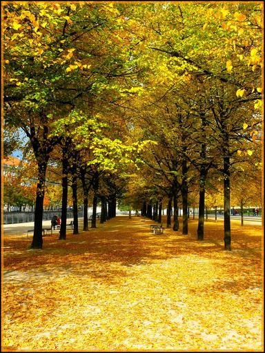 | Keywords: autumn fall foliage golden autumn leaves leaves in the autumn trees colorful tree yellow nature avenue away road rest berlin capital germany pleasure garden tree lined avenue color perspective deep sunlight lighting shadow hispanic shadow play light |