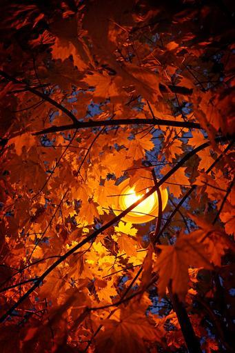 Keywords: autumn leaves autumn leaves wood light lamplight