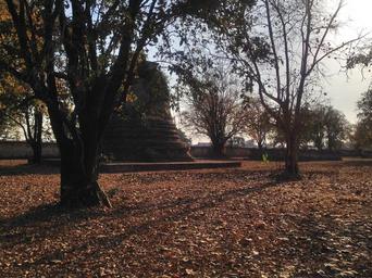 Keywords: autumn leaves fall leaves park tourism old brown trees