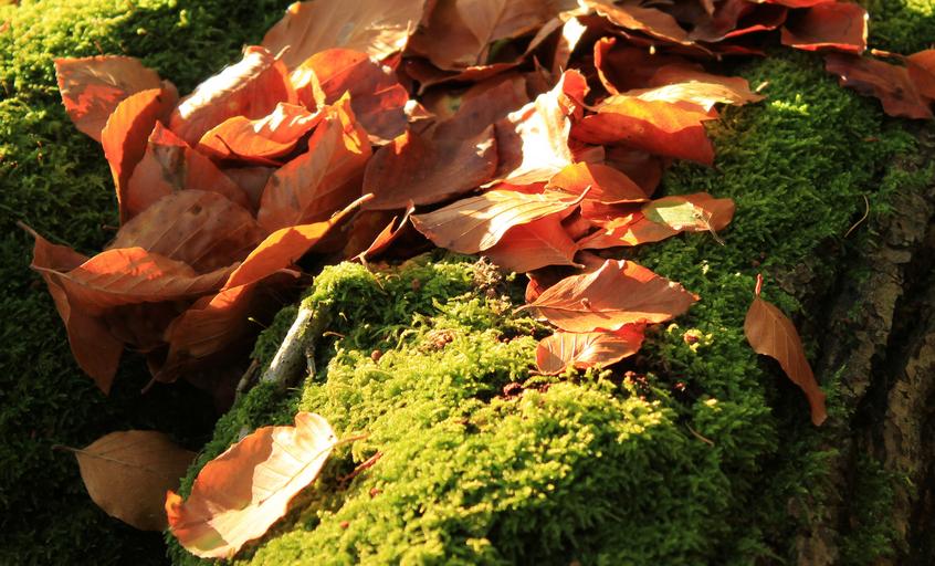 Keywords: autumn leaves moss wood forest nature green