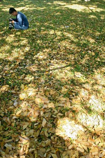 Keywords: autumn people the park yellow leaves