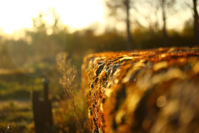 MAKE A MEME View Large Image autumn stone wall moss fall foliage evening light