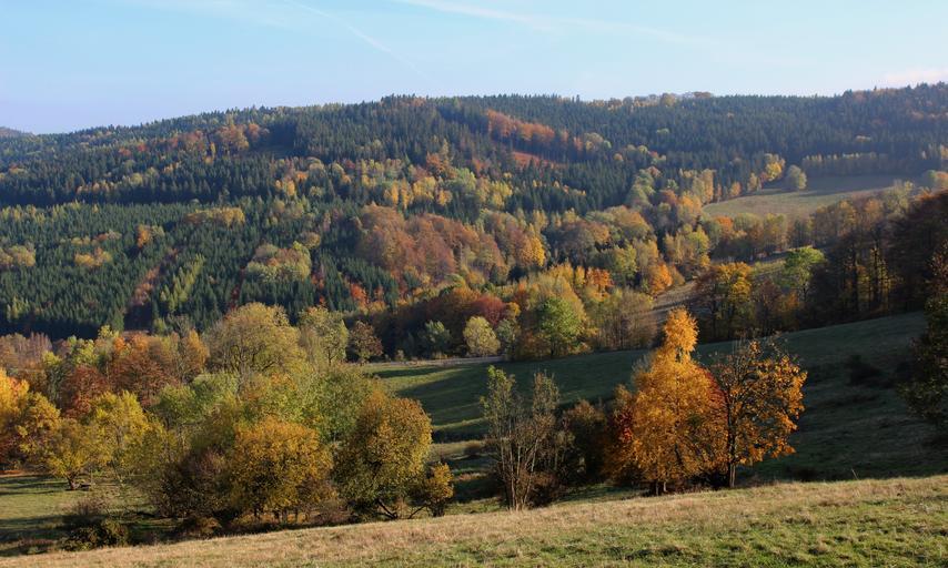 Keywords: autumn tree foliage forest nature park landscape october gold poland the national park mountains color the sun