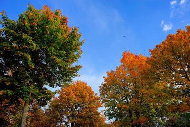 Keywords: autumn trees golden autumn leaves in the autumn sky tree in the fall landscape autumn colours fall color light mood