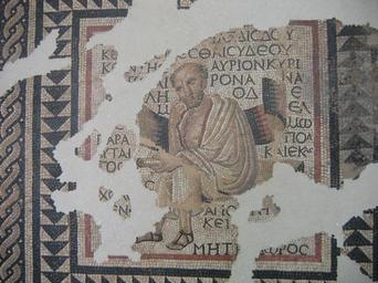 Keywords: Autun Musée Rollin Mosaïc.jpg Autun musée Rolin mosaïque des auteurs grecs own 2006-07-27 Urban PD Musée Rolin Mosaics Ancient Roman mosaics in Saône-et-Loire Autun Ancient Greek inscriptions in France