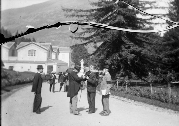 Keywords: bibliothèque de toulouse bibliothèquedetoulouse men men gathering mengathering family masculine costumes masculinecostumes hats cane house walkway blackandwhite monochrome black and white Fonds Trutat - Photographie ancienne Cote : TRU C 313 Localisation : Fonds ancien Original non communicable Titre : Aux Quinconces, cousin G., Belloc, Gourdon, Paul, Luchon, septembre 1897 Auteur : Trutat, Eugène Rôle de l’auteur : Photographe Lieu de création : Bagnères-de-Luchon (Haute-Garonne) Date de création : : 1897 Mesures : 5 x 6 cm Observations : Plaque cassée Mot(s)-clé(s) : -- Parc -- Arbre -- Maison -- Eté -- Sapin -- Montagne -- Allée -- Buisson -- Homme -- Costume masculin -- Automne -- Belloc, Emile -- Gourdon, Maurice -- Trutat, Paul -- Bagnères-de-Luchon (Haute-Garonne) -- Bagnères-de-Luchon (Haute-Garonne ; canton) -- Midi-Pyrénées (France) -- Pyrénées (France) -- Parc des Quinconces (Bagnères-de-Luchon) -- 19e siècle, 4e quart Médium : Photographies -- Négatifs sur plaque de verre -- Noir et blanc -- Scènes de rue Bibliographie : Frappé (Jean-Bernard). - Autrefois Bagnères de Luchon. Tome I. - Anglet : Atlantica, 2001. - 345 p. ; 15 x 22 cm. - (Autrefois) cf. p. 140-141. Bibliothèque de Toulouse. Domaine public Fonds Trutat - Photographie ancienne Cote : TRU C 313 Localisation : Fonds ancien Original non communicable Titre : Aux Quinconces, cousin G., Belloc, Gourdon, Paul, Luchon, septembre 1897 Auteur : Trutat, Eugène Rôle de l’auteur : Photographe Lieu de création : Bagnères-de-Luchon (Haute-Garonne) Date de création : : 1897 Mesures : 5 x 6 cm Observations : Plaque cassée Mot(s)-clé(s) : -- Parc -- Arbre -- Maison -- Eté -- Sapin -- Montagne -- Allée -- Buisson -- Homme -- Costume masculin -- Automne -- Belloc, Emile -- Gourdon, Maurice -- Trutat, Paul -- Bagnères-de-Luchon (Haute-Garonne) -- Bagnères-de-Luchon (Haute-Garonne ; canton) -- Midi-Pyrénées (France) -- Pyrénées (France) -- Parc des Quinconces (Bagnères-de-Luchon) -- 19e siècle, 4e quart Médium : Photographies -- Négatifs sur plaque de verre -- Noir et blanc -- Scènes de rue Bibliographie : Frappé (Jean-Bernard). - Autrefois Bagnères de Luchon. Tome I. - Anglet : Atlantica, 2001. - 345 p. ; 15 x 22 cm. - (Autrefois) cf. p. 140-141. Bibliothèque de Toulouse. Domaine public |