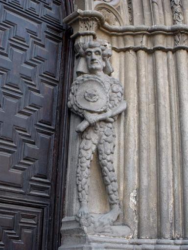 Keywords: Avila - Catedral, exteriores 36.jpg en Hombre salvaje en la portada occidental de la Catedral de Ávila own Zarateman 2012-1-14 West facade of Ávila cathedral Wild man in art Church sculptures in the province of Ávila Cc-zero