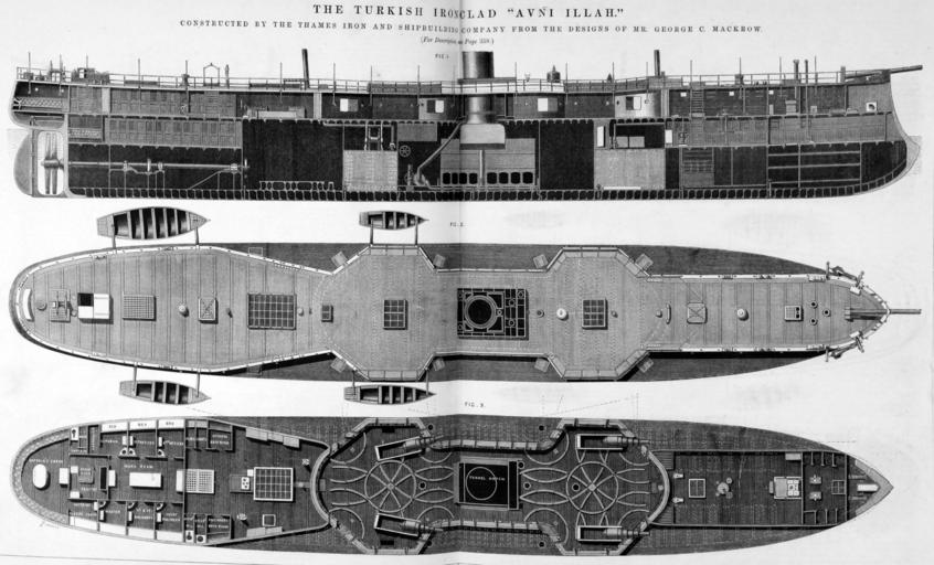 Keywords: Avnillâh (plan) - Engineering - 1870-05-20.png en The Turkish ironclad Avnillâh was built by the Thames Iron and Shipbuilding Company and it was featured in the May 20 1870 edition of the periodical Engineering on page 358 referred to as the Avni Illah accompanied by some illustrations including this one Engineering 1870-05-20 page 358 http //www gracesguide co uk/images/c/c9/Eg18700520 pdf link to file at gracesguide co uk Unknown illustrator of the time 1870 Avnillah ship 1870 Engineering 1870 PD-old-70-1923 |