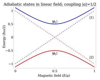 Keywords: Avoided crossing in linear field.svg en An avoided crossing of energy levels for a two-level coupled system in an external linear magnetic field 2014-07-06 13 37 11 own SamuelRiv French translation Svg version of File Avoided_crossing png by User DJIndica with the scale and title additionally labeled Originally intended for use in the article Wikipedia Adibiatic Theorem Created in Mathematica 8 0 code with text reformatted using Inkscape 0 48 cc-zero Uploaded with UploadWizard Quantum mechanics Magnetic fields |