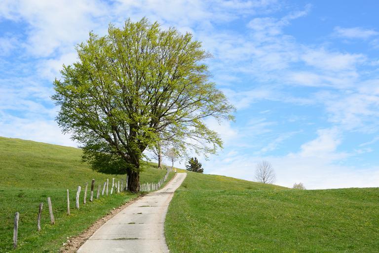 Keywords: away road nature horizon sky tree spring wide mood idyllic idyll landscape