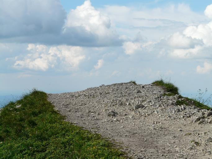 Keywords: away road nothing abyss end trail stone grass scree sky clouds