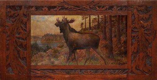 Keywords: Axel Borg-Älgtjur i landskap.jpg Älgtjur i landskap Axel Borg 1847-1916 oil canvas cm 54 102 www uppsalaauktion se Public domain langswitch Skuren originalram Carved original frame geschnitzter Originalrahmen Other versions PD-Art Axel Borg Paintings of moose |