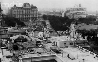 Keywords: Azoteas de la Casa Rosada..jpg es La lucha ha cesado Esta antigua fotografía muestra algunos de los daños en las azoteas de la Casa Rosada Al fondo el palacio del Ministerio de Comunicaciones A la derecha el Ministerio de Marina Detrás el sector portuario 1955 http //fdra blogspot de/2014/01/revolucion-libertadora-el-bombardeo-de html Argentine Media other versions Custom license marker 2015 02 11 PD-AR-Photo Uploaded with UploadWizard 1955 coup d'état in Argentina Revolución Libertadora Casa Rosada Buenos Aires |