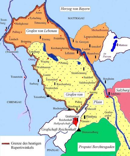 | Keywords: B1 Salzburggau Herrschaftsbereiche im Hochmittelalter.JPG de Herrschaftsgebiete im nördlichen Salzburggau im Hochmittelalter um 1200 etwa 1104 bis 1229 <br/> Die Karte wurde erstellt für den heimatkundlichen Beitrag -- Von Salzburg žretour nach Baiern - der Rupertiwinkel fiel vor 200 Jahren an das bayerische Königreich zurück -- der in žHeimatblätter Beilage von Reichenhaller Tagblatt und Freilassinger Anzeiger am 25 09 2010 veröffentlicht wurde Andreas Hirsch Bad Reichenhall - uploader Furchenstein Andreas Hirsch Bad Reichenhall 2010 PermissionOTRS 2012030810009403 Kartographische Grundlagen Karte žBurgen und Herrschaftsgebiete um 1200 in Johannes Lang Burgen und Adel in Heimat mit Geschichte und Zukunft Hg EuRegio Salzburg-Berchtesgadener Land-Traunstein 2004 Seite 33 Karte žHerrschaftsgliederung im Reichenhaller Raum um 1130 in Johannes Lang Geschichte von Bad Reichenhall Neustadt/Aisch 2009 Seite 129 Karte žTerritoriumsbildung des Erzstifts Salzburg in Heinz Dopsch Die Entstehung des Territoriums in Dopsch/Spatzenegger Geschichte Salzburgs Band I/1 Salzburg 1999 Seite 344 Literarische Grundlagen Heinz Dopsch Kleine Geschichte Salzburgs Salzburg 2001 Dopsch/Spatzenegger Geschichte Salzburgs Band I/1 Salzburg 1999 EuRegio Salzburg-Berchtesgadener Land- Traunstein Heimat mit Geschichte und Zukunft 2004 Johannes Lang Geschichte von Bad Reichenhall Neustadt/Aisch 2009 Helga Reindel-Schedl Laufen an der Salzach Die alt-salzburgischen Pfleggerichte Laufen Staufeneck Teisendorf Tittmoning und Waging Historischer Atlas von Bayern Altbayern H 55 1989 Rainer Wilflinger Grenzverlauf und Grenzsituation zwischen dem Erzstift Salzburg und Bayern im Bereich des nördlichen Rupertiwinkels in Das Salzfass Historischer Verein Rupertiwinkel 2002/Heft 2 Rupertiwinkel Maps of the history of Salzburg Cc-zero |