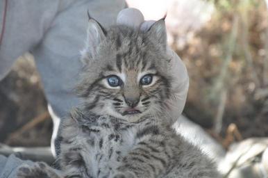 | Keywords: bobcat b330 wildlife carnivore kitten animals animalsandinsects Springtime is baby time! Last week our wildlife team ear-tagged another litter of bobcat kittens. The kittens are B328, B329, and B330 because they are the 328th, 329th, and 330th bobcats we've tracked during our study. We've been tracking their mom, B295, since January 2012 and this is the first litter we're aware of since then. Male kitten B330. This way of holding the animal is called scruffing. It is an attempt to mimic the way their mom holds them and it helps to keep them calm, not to mention safe and secure! Springtime is baby time! Last week our wildlife team ear-tagged another litter of bobcat kittens. The kittens are B328, B329, and B330 because they are the 328th, 329th, and 330th bobcats we've tracked during our study. We've been tracking their mom, B295, since January 2012 and this is the first litter we're aware of since then. Male kitten B330. This way of holding the animal is called scruffing. It is an attempt to mimic the way their mom holds them and it helps to keep them calm, not to mention safe and secure! |