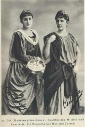 Keywords: B37.jpg de Die Montenegrinerinnen Grossfuerstin Militza und Anastasia die Rasputin bei Hof einfuehrten ru Че ного ки великие княгини илица и Анастасия кото ые ввели Распутина во Дво ец в ца скую семью 1900-е http //ldn-knigi lib ru/R/Foto/Rasputin/RFM_Rasputin htm не указан PD-old Uploaded with UploadWizard Princess Milica of Montenegro Princess Anastasia of Montenegro Sisters in art