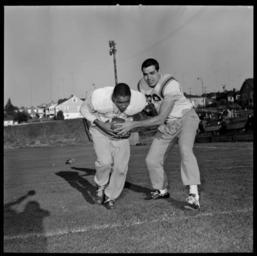Keywords: blackandwhite people monochrome outdoor black and white B.C. Lions football players Willie Fleming, Joe Kapp VPL Accession Number: 44011 Date: 1960 Photographer/Studio: Province Newspaper Content: Willie Fleming named to the all-star team Topic: Sports Football Portrait Person: Fleming, Willie Kapp, Joe Organization: B.C. Lions Football Club Location: British Columbia - Vancouver More information on our historical photograph collection: www.vpl.ca/historicalphotos B.C. Lions football players Willie Fleming, Joe Kapp VPL Accession Number: 44011 Date: 1960 Photographer/Studio: Province Newspaper Content: Willie Fleming named to the all-star team Topic: Sports Football Portrait Person: Fleming, Willie Kapp, Joe Organization: B.C. Lions Football Club Location: British Columbia - Vancouver More information on our historical photograph collection: www.vpl.ca/historicalphotos |