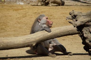 Keywords: baboon monkey animal old grey back sit watch chef zoo zoo animal males
