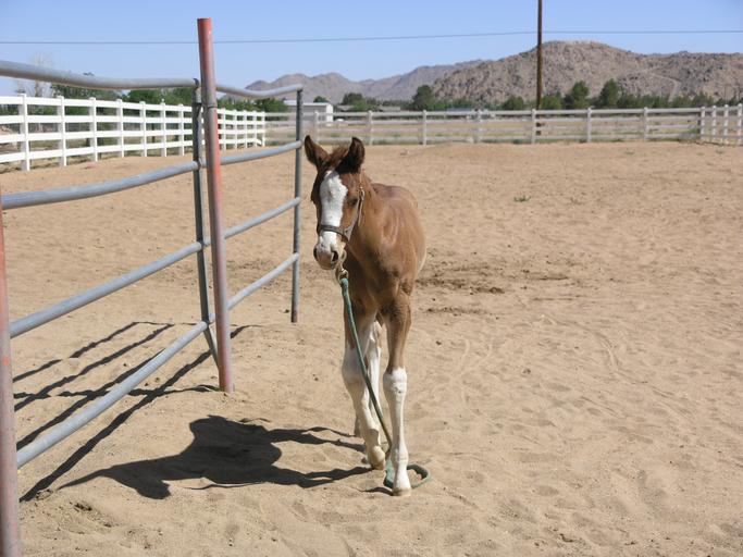 Keywords: baby horse calf horse baby nature mammal animal young wildlife cute little equine farm small brown tan white