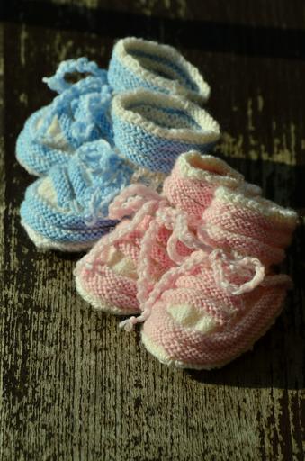 Keywords: baby shoes birth greeting twins gift hand labor wool knitted birth announcement blue pink baby