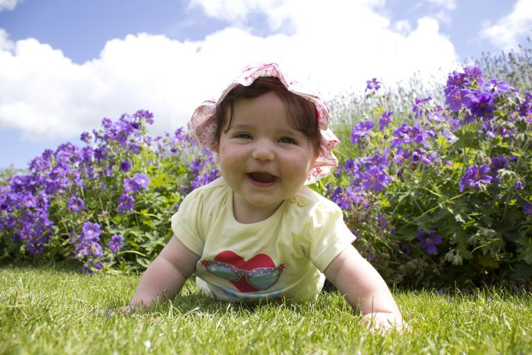Keywords: baby young smile day dream child girl cute happiness smiling cheerful pretty adorable kid infant summer flowers purple happy spring