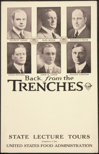 | Keywords: Back from the Trenches. Everett Colby, Dan Reed, Edward F. Trefz, Roscoe Mitchell, John B. Lord, Julius Lincoln. State L - NARA - 512524.jpg Scope and content General notes 512524 Local identifier 4-P-85 U S Food Administration Educational Division Advertising Section 01/15/1918 - 01/1919 Still Picture Records Section Special Media Archives Services Division NWCS-S National Archives at College Park 8601 Adelphi Road College Park MD 20740-6001 other date circa 1917 1919 Record group Record Group 4 Records of the U S Food Administration 1917 - 1920 Record group ARC 333 World War I Posters compiled 1917 - 1919 Series ARC 512439 File unit File unit ARC Variant control numbers NAIL Control Number NWDNS-4-P-85 Other versions <gallery> File Back_from_the_Trenches _Everett_Colby _Dan_Reed _Edward_F _Trefz _Roscoe_Mitchell _John_B _Lord _Julius_Lincoln _State_L_-_NARA_-_512524 tif tif File Back_from_the_Trenches _Everett_Colby _Dan_Reed _Edward_F _Trefz _Roscoe_Mitchell _John_B _Lord _Julius_Lincoln _State_L_-_NARA_-_512524 jpg jpg </gallery> NARA-cooperation PD-USGov World War I posters of the United States United States Food Administration |