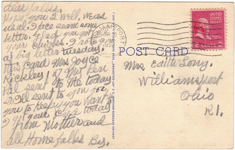 | Keywords: postcard postcards used postmarked port clinton portclinton port clinton, ohio portclintonohio ohio stamp cancel 1952 1950s curt teich co. curtteichco linen c.t. art colortone ctartcolortone e.b. ackley ebackley document text writing Description on front of card: Part of Bathing Beach and Picnic Grounds at the New State Park at East Harbor, Just East of Port Clinton, Ohio No. in Series: 157 Published by: E.B. Ackley, Sandusky, Ohio | Curteich-Chicago "C.T. Art-Colortone" by Curt Teich Co., Chicago, Illinois Used. Publisher/Distributor Notes: Eugene B. Ackley (1871-1957) was a musician and band leader in Sandusky, Ohio. He also taught music at Sandusky High School. The photos and images were created by E.B. Ackley, but the cards were printed en masse by the Curt Teich Company in Chicago, Ill., under the trade name, "C.T. Art-Colortone." Sources: sanduskyhistory.blogspot.com/2006/12/eb-ackley-musician-b... sanduskyhistory.blogspot.com/2013/08/ohios-lake-erie-vaca... Curt Teich emigrated to Chicago in 1895. He had worked as a lithographer in Lobenstein, Germany. He founded the Curt Teich Company in 1898, concentrating on newspaper and magazine printing. He was an early publisher of postcards, but he didn't begin printing them himself until 1908. According to MetroPostcard.com, "As his competition dwindled, his sales expanded and his American factories would eventually turn out more postcards than any other in the United States. " The company was best known for their wide range of advertising and postcards of North America. By the 1920s, it was producing so many postcards with borders that they became recognized as a type dubbed "White Border Cards," creating an "era." Curt Teich started using offset presses in 1907, but it took a number of years before he had offset presses made to his satisfaction, and many more years for him to perfect the method. His innovations in this printing technique directly led to the production of what we now call "linens" by the early 1930s. The company aided the war effort during the second world war by also printing many military maps. Curt Teich eventually turned management of the company over to his son, but he remained active in company operations throughout its history. Curt Teich died in 1974 and the family business was sold to Regensteiner Publishers who continued to print postcards at the Chicago plant until 1978 when the rights to the company name and processes were sold to the Irish company, John Hinde Ltd. Their California subsidiary now prints postcards under the name John Hinde Curteich, Inc. Source: www.metropostcard.com/publisherst.html Description on front of card: Part of Bathing Beach and Picnic Grounds at the New State Park at East Harbor, Just East of Port Clinton, Ohio No. in Series: 157 Published by: E.B. Ackley, Sandusky, Ohio | Curteich-Chicago "C.T. Art-Colortone" by Curt Teich Co., Chicago, Illinois Used. Publisher/Distributor Notes: Eugene B. Ackley (1871-1957) was a musician and band leader in Sandusky, Ohio. He also taught music at Sandusky High School. The photos and images were created by E.B. Ackley, but the cards were printed en masse by the Curt Teich Company in Chicago, Ill., under the trade name, "C.T. Art-Colortone." Sources: sanduskyhistory.blogspot.com/2006/12/eb-ackley-musician-b... sanduskyhistory.blogspot.com/2013/08/ohios-lake-erie-vaca... Curt Teich emigrated to Chicago in 1895. He had worked as a lithographer in Lobenstein, Germany. He founded the Curt Teich Company in 1898, concentrating on newspaper and magazine printing. He was an early publisher of postcards, but he didn't begin printing them himself until 1908. According to MetroPostcard.com, "As his competition dwindled, his sales expanded and his American factories would eventually turn out more postcards than any other in the United States. " The company was best known for their wide range of advertising and postcards of North America. By the 1920s, it was producing so many postcards with borders that they became recognized as a type dubbed "White Border Cards," creating an "era." Curt Teich started using offset presses in 1907, but it took a number of years before he had offset presses made to his satisfaction, and many more years for him to perfect the method. His innovations in this printing technique directly led to the production of what we now call "linens" by the early 1930s. The company aided the war effort during the second world war by also printing many military maps. Curt Teich eventually turned management of the company over to his son, but he remained active in company operations throughout its history. Curt Teich died in 1974 and the family business was sold to Regensteiner Publishers who continued to print postcards at the Chicago plant until 1978 when the rights to the company name and processes were sold to the Irish company, John Hinde Ltd. Their California subsidiary now prints postcards under the name John Hinde Curteich, Inc. Source: www.metropostcard.com/publisherst.html |