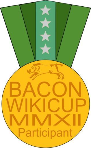 | Keywords: Bacon WikiCup 2012 Medal.svg A medal awarded to all participants in the Bacon WikiCup 2012 an event that occurred during the Bacon Challenge 2012 own / Derived from Crudeboar svg Public Domain 2013-12-09 Kevin Payravi Wikimedia Commons Inkscape 2012 medals SVG medals |