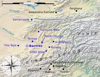 Keywords: Bactriane.svg fr Carte de la Bactrie Fond de l'image tiré de http //www naturalearthdata com/ Natural Earth D'après le fichier BactriaMap jpg par World Imaging Flappiefh World Imaging 2013-02-18 <gallery>File BactriaMap jpg Anglais</gallery> Tillya Tepe Ai Khanoum Maps of Bactria Cc-zero |