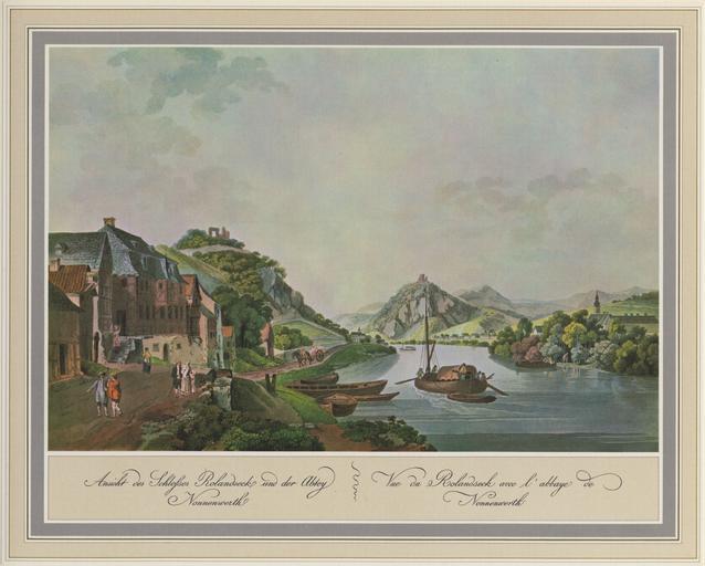 | Keywords: Bad Honnef Rolandseck Drachenfels und Klosterinsel Nonnenwerth Johann Andreas Ziegler.jpg Bad Honnef Rolandseck Drachenfels und Klosterinsel Nonnenwerth; Kupferstich aquarelliert aus »Fünfzig malerische Ansichten Rhein-Stroms von Speyer bis Düsseldorf« erschienen bei Artaria in Wien 1798; nach Aquarellen von Laurenz Janscha die im Sommer 1792 entstanden http //images zeno org/Kunstwerke/I/big/561s031a jpg 1792 Creator Johann Andreas Ziegler PD-old-100 Fünfzig malerische Ansichten Rhein-Stroms von Speyer bis Düsseldorf Nonnenwerth Rolandseck Images from zeno org |