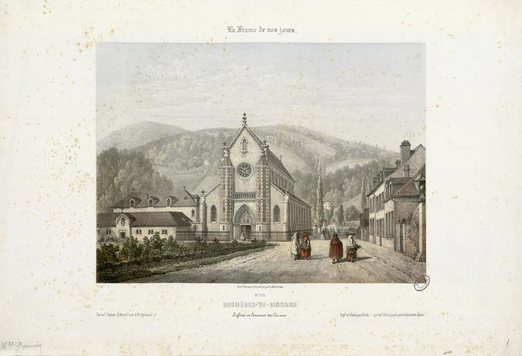 Keywords: Bagnères-de-Bigorre - Eglise et couvent des Carmes - Fonds Ancely - B315556101 A MERCEREAU 7 007.jpg Impression en 3 coul par Frick frères à Paris Fait partie d'un ensemble de recueils de lithographies de Mercereau composés de lithographies provenant de La France de nos jours vaste suite publiée par livraisons de 1853 à 1876 et comprenant 475 planches en deux tirages l'un à deux teintes noir et bistre l'autre en couleurs Les libraires ont réuni ces planches en albums de composition variable quant au nombre de planches et aux dessinateurs Asselineau Mercereau Maurice Deroy etc Un titre Les Pyrénées par Ch Mercereau; Bagnères-de-Luchon par Ch Mercereau était frappé sur le plat supérieur de la reliure de l'album ainsi que le nom du Libraire pour lequel il était réalisé La plupart des recueils de ces planches pyrénéennes portent le nom de Sajous libraire à Bagnères-de-Luchon Pl 1 à 18 numérotées de 370 à 386 Pl 374 pl 5 et 6 en double -- Pl 19 20 et 21 numérotées respectivement 407 415 et 418 Ces trois pl ont été dessinées et lithographiées par Asselineau -- Pl 22 23 et 24 numérotées 438 439 et 440 -- Pl 22 lith par Aubrun -- Pl 25 numérotée 441 -- Pl 26 à 40 numérotées de 327 à 341 -- Pl 41 à 46 numérotées de 363 à 368 -- Pl 47 numérotée 369 -- Pl 48 num 292 -- Pl 49 et 50 num 264 et 265 -- Pl 51 et 52 num 268 et 269 -- Pl 53 à 55 num de 293 à 295 -- Pl 56 num 300 -- Pl 57 à 59 num de 307 à 309 -- Pl 60 à 70 num de 316 à 326 -- Pl 71 num 63 dessin et lith d'Asselineau imprimerie Destouches -- Pl 72 et 73 num 87 et 88 dessin et lith d'Asselineau imprimerie Destouches -- Pl 74 num 124 signée Lebreton éditée chez Lalonde à Paris et imprimée chez Becquet frères à Paris -- Pl 75 num 161 dessin et litho d'Asselineau imprimerie Destouches --Pl 76 à 78 num de 207 à 209 -- Pl 79 à 81 num de 211 à 213 -- Pl 82 num 220 dessin et lith de Maurice imprimerie Destouches -- Pl 83 à 86 num de 226 à 229 -- Pl 87 et 88 num 234 et 235 -- Pl 89 à 91 num de 273 à 275 -- Pl 92 et 93 num 290 et 291 Pièces jointes 6 pl sépia dont certaines sont des doubles du recueil de Mercereau Les cinq premières planches sont numérotées respectivement 318 321 324 331 386 La dernière planche n'est pas extraite de La France de nos jours mais de L'Espagne pittoresque et monumentale Ces six planches sont signées Mercereau éditées chez Sinnet et imprimées chez Frick frères Ancely René 1876 - 1966 Possesseur fre public domain domaine public B315556101_A_MERCEREAU_7_007 jpg image/jpeg 1 f de pl lithogr ; 30 cm oblong Frick frères Imprimeur Sinnet F Éditeur http //numerique bibliotheque toulouse fr/collect/general/index/assoc//ark /74899/B315556101_A_MERCEREAU_7_007 dir/B315556101_A_MERCEREAU_7_007 jpg Bibliothèque municipale de Toulouse A-MERCEREAU 7-7 Creator Charles Mercereau http //catalogues toulouse fr/web2/tramp2 exe/do_keyword_search/log_in setting_key BMT1 servers 1home query p001631 St Jean-de-Luz intérieur de l'Eglise St Jean-de-Luz le Château de l'Infante Biarritz Vue générale prise du Phare Château de Mauvesin près Bagnères-de-Bigorre Hautes Pyrénées Bagnères de Bigorre Hautes Pyrénées - Intérieur de l'Eglise des Carmes en couleurs Bagnères de Bigorre Hautes Pyrénées - Intérieur de l'Eglise des Carmes Bagnères-de-Bigorre Hautes-Pyrénées - Tour des Jacobins Cascade et Pont de Magenta Vallée de l'Esponne Hautes Pyrénées Cascade de Trémes-Aïgues Vallée de Grip Hautes Pyrénées St Sauveur Hautes Pyrénées - Le Pont Napoléon Bayonne - Eglise St André Arreau et la Vallée d'Aure Hautes Pyrénées - Vue prise au dessus de la route du Col d'Aspin Auch - Vue prise sur les bords du Gers Auch - Vue de la Cathédrale Auch - Intérieur de la Cathédrale Bagnères-de-Bigorre - Vue Générale prise de la Fontaine ferrugineuse Eaux-Bonnes Basses-Pyrénées - L'établissement Thermal et la Chapelle Nantes - Vue de l'Eglise Ste Croix Le Croisic - Plage des Baigneurs et Etablissement de Bains Le Folgoët - Vue de l'Eglise Brèche de Roland prise de Gèdres Hautes Pyrénées Chapelle du couvent de Pouëlahun i e Pouey Lahun - Vallée d'Azun Hautes Pyrénées Eglise des Templiers à Luz Le Pont de Scia - Route de Luz à Gavarnie Hautes-Pyrénées Vue de l'établissement de la Raillière près Cauterets Hautes-Pyrénées Vue générale de Cauterets prise du Mamelon Vert Hautes-Pyrénées Vue du Fort de Lourdes Hautes-Pyrénées Vue d'Argelès-de-Bigorre Hautes-Pyrénées Vue de St Sauveur Hautes-Pyrénées Le Pas de l'Echelle Route de Gavarnie Hautes-Pyrénées Fond de la Vallée d'Argelès prise de la terrasse de St Savin Hautes-Pyrénées Place Grammont à Pau Basses-Pyrénées Vue générale des Eaux-Bonnes Basses-Pyrénées Barèges et la Vallée du Bastan Hautes-Pyrénées Chute supérieure du Pont d'Espagne Hautes-Pyrénées La grotte miraculeuse à Lourdes Hautes-Pyrénées Eglise de Bétharram et Pont de Lestelle Basses Pyrénées Cascade du Cerizet Près Cauterets Hautes-Pyrénées Pic du Midi d'Ossau 2885m Basses Pyrénées - Vue prise du 3e plateau de Bious-Artigues Pau - Vue prise de la terrasse du Château Toulouse - Cloître du Musée Galerie du Moyen-Age Pau - Vue du Château prise du Parc Toulouse - Cloître du Musée et Clocher des Augustins Toulouse - La maison de pierre fragment de la façade Toulouse - Intérieur de St Sernin St Jean-de-Luz Fort du Socoa Toulouse - Vue du Capitole Bordeaux Vue de la Porte du Caillau i e Cailhau Bordeaux Porte de la grosse Cloche Bordeaux Vue des Quinconces Bordeaux - Vue de la Tour et de l'Eglise de St Michel Toulouse - Vue du Pont de pierre prise du Quai de Brienne Toulouse - Abside de l'Eglise de St Sernin de l'an 1097 Toulouse - Choeur de la Cathédrale St Etienne Rouen - Hôtel de Bourgtheroulde Biarritz - Vue des Bains Napoléon et du Casino Biarritz - Vue des Bains du Port Vieux Biarritz - Vue de l'Entrée de la Ville à l'arrivée de Bayonne Le Lac Bleu Hautes-Pyrén