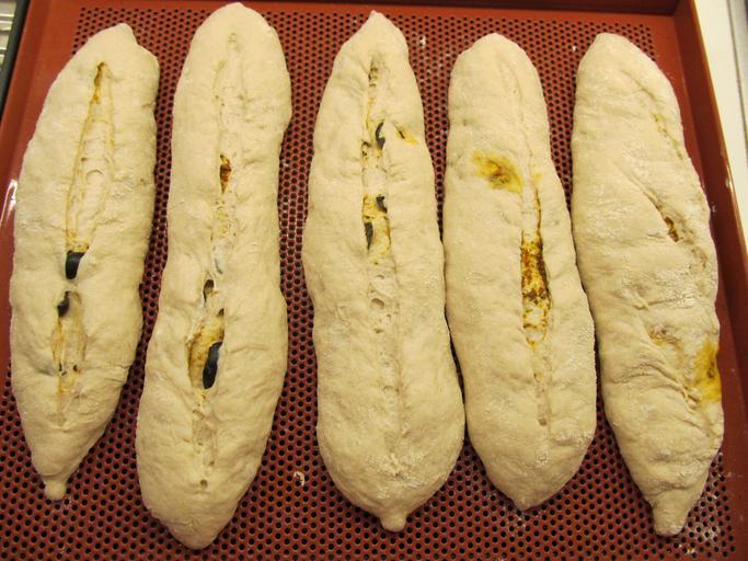 Keywords: baguette dough filled perforated sheet ready to bake