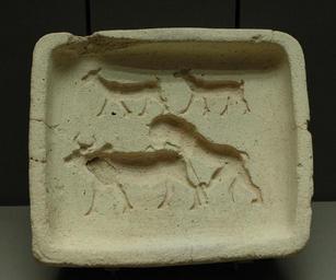 Keywords: Baking mold Mari Louvre AO18902.jpg Baking mold for pastry or bread representing goats and a lion attacking a cow Terracotta early IId millennium BC royal palace at Mari ancient Syria Moule à pâtisserie ou à pain représentant des capridés et un lion attaquant un bovidé Terre cuite début du IIe millénaire av J -C palais de Mari terracotta cm 19 3 22 5 7 9 Institution Louvre object department Near Eastern antiquities room ID 105 24810 object history credit line ProvenanceEvent excavated André Parrot 1935-1936 Mari accession number AO 18902 own photo date 2005 Marie-Lan Nguyen artwork license PD-old-100 photo license other versions Near Eastern Antiquities in the Louvre - Room 3 Palace of Zimri-Lim room 77 Bread baking History of bread |