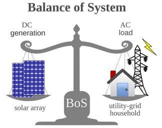 Keywords: Balance of System.svg Balance of System Balance of system BOS The Balance of System components of a photovoltaic system balance the the power-generating subsystem of the solar array left side with the power-using side of the AC- household appliances and the utility grid right side own based on Solar Energy Technologies Program U S Department of Energy http //web archive org/web/20080504001534/http //www1 eere energy gov/solar/bos html archived website 2014-09-10 inkscape margin 5px 0; Valid SVG none Rfassbind Photovoltaic power schemas and diagrams |
