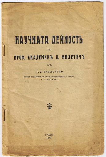 Keywords: Balaschev-Miletich.jpg cite book аучната дейность на п оф академикъ Л илетичъ Баласчевъ Г Д 1934 scanned 1934 Georgi Balaschev 1869 - 1936 PD-old Book covers from Bulgaria 1934 books Georgi Balaschev Books in Bulgarian