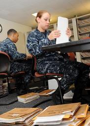 Keywords: Balboa PSD Service Record Phase Out DVIDS304238.jpg en Seaman Alicia Drake assigned to Personnel Support Detachment Balboa works on the Navy-wide phase out of the Enlisted Field Service Records converting from paper files to electronic files Drake is part of the eight-member team who work around the clock to reach their May 31 goal of phasing out all 4 200 Enlisted Field Service Records PSD Balboa takes care of all enlisted personnel service records for Naval Medical Center San Diego USNS Mercy Naval School of Health Sciences San Diego all outlying clinics assigned to NMCSD and the Fleet Industrial Supply Center The Navy deadline is Sept 30 PSD Balboa has already phased out 1 000 records since they started May 3 2010-05-10 Petty Officer 1st Class Anastasia Puscian https //www dvidshub net/image/304238 100728-N-+++++-001 2010-07-28 16 19 SAN DIEGO CA US PD-USGov-Military-Navy USNS Mercy T-AH-19 Images from DoD uploaded by Fæ |