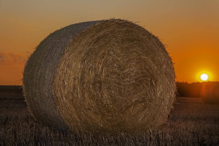 Keywords: bale straw agriculture cereals economy bales field harvest grain rural landscape light sunlight in the evening sunset day s nightfall