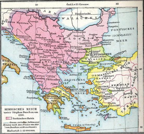 Keywords: Balkans in 1350 according to Gustav Droysen from 19th century.jpg Stefan Dušan about 1350 Modern historiography has a stance that borders of Serbian empire were somewhat different For the view of modern historiography please see this map ovu mapu de Serbisches Reich Allgemeiner historischer Handatlas 1886 Gustav Droysen PD-old Original upload log de wikipedia Septembermorgen CommonsHelper page de wikipedia Balkan_1350 jpg 2007-10-17 15 50 Interrex 577×522× 299646 bytes <nowiki> Andere Versionen </nowiki> 2007-10-17 15 44 Interrex 577×522× 41312 bytes <nowiki> Information Allgemeiner historischer Handatlas Gustav Droysen 1886 Andere Versionen </nowiki> Old maps of the Balkans 1886 maps Old maps of Europe Old maps of Serbia Stefan Uroš IV Dušan of Serbia Maps of the Serbian Empire Maps of the history of the Republic of Macedonia in the Middle Ages Maps of the history of Republika Srpska Maps of the history of Vojvodina Maps of the history of Syrmia Maps of the history of the medieval Balkans 1350 Maps showing 14th-century history Maps from Allgemeiner Historischer Handatlas Old maps of the Byzantine Empire Maps of the history of Greece Greece in the 14th century |